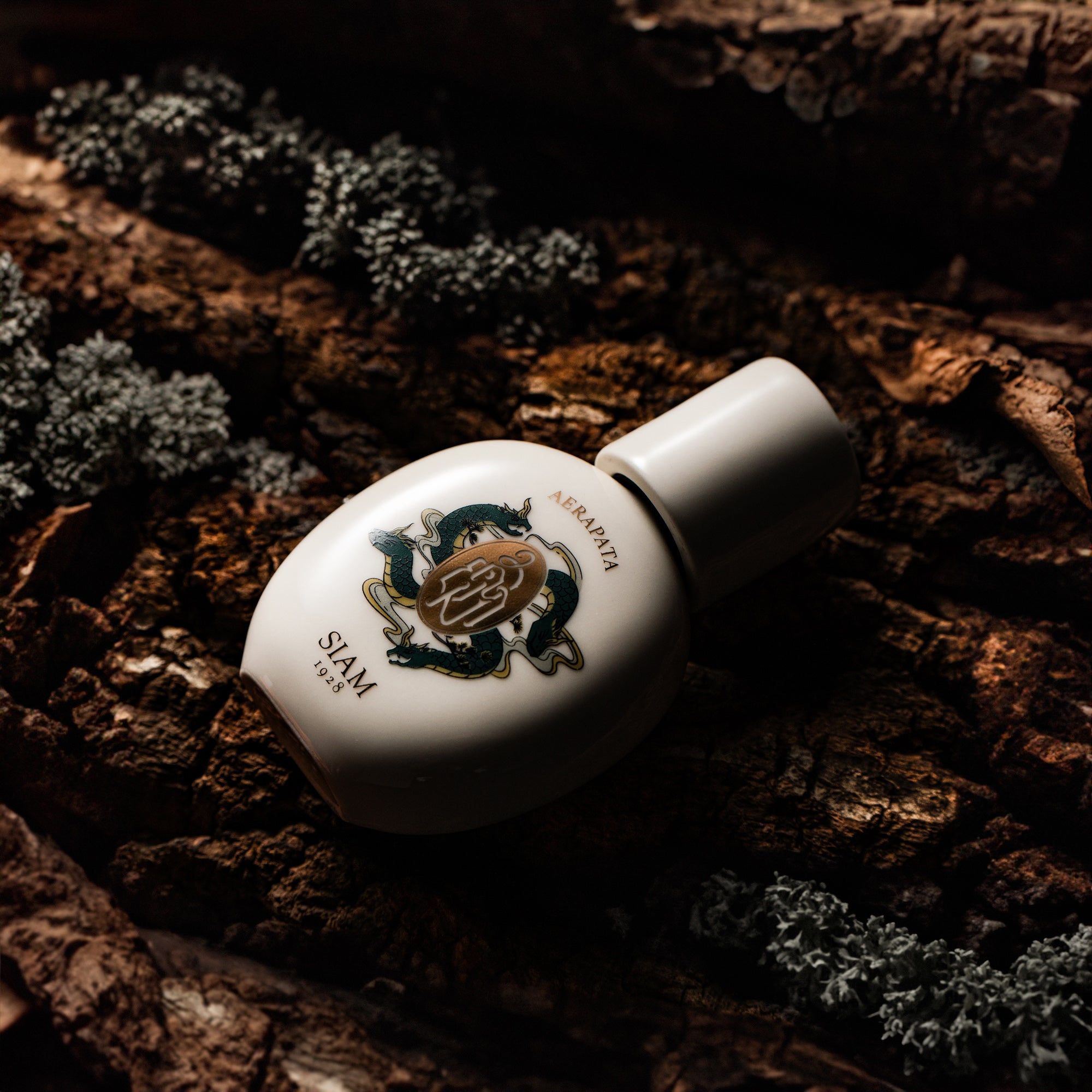 Inspired by Thai naga lineage and literature, our fragrance captures each naga species' essence. It embodies the lush rainforest, where moss-covered trees surround a pond adorned with water ferns—the dwelling of the Aerapata naga.