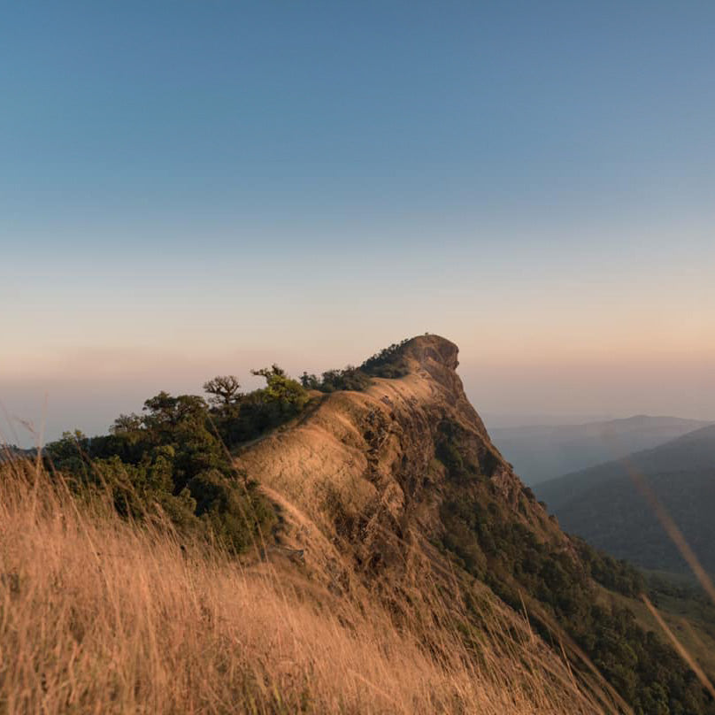 reminiscent of sunlight on the golden fields. The fragrance features Vetiver and Hay, embodying the essence of the mountaintop's golden landscape.