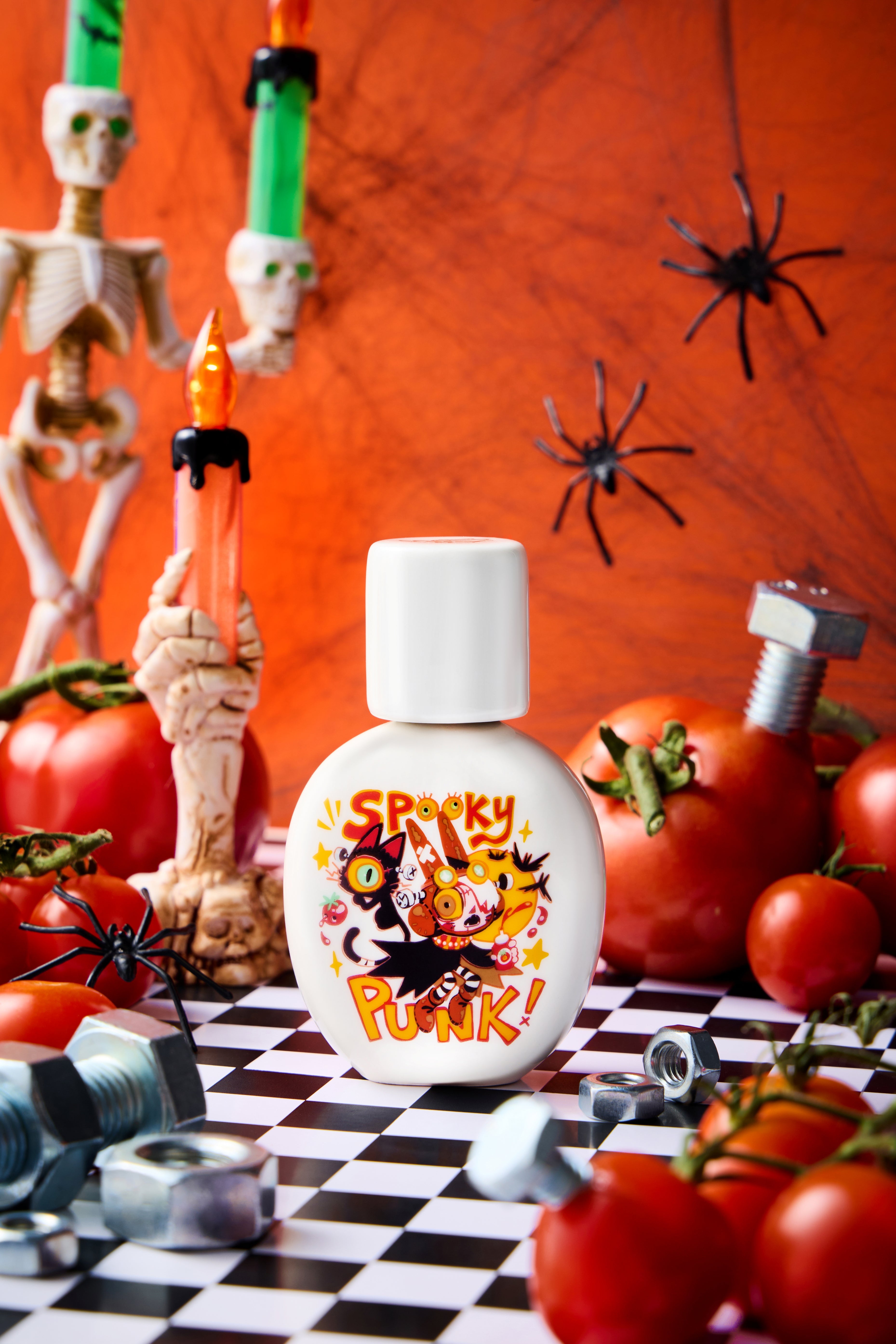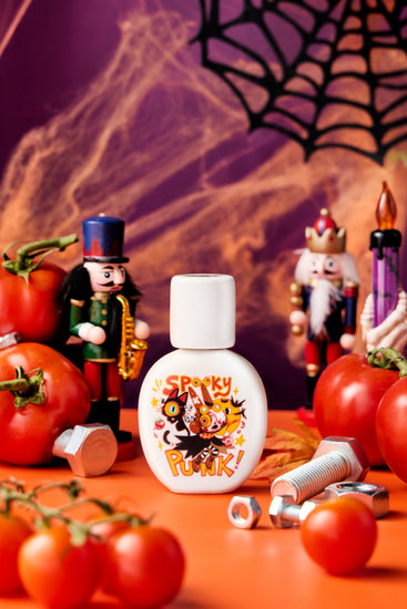 This is not merely a perfume, but the essence of Spooky Punk itself: whimsical yet haunting, innocent yet eerie, stitched together from iron and leather, smoke and sweetness. To wear it is to step beside Little Batzy and See-Ew, the spectral ringleaders who turn pain into play, into a world where the macabre turns tender and every shadow carries a crooked smile.